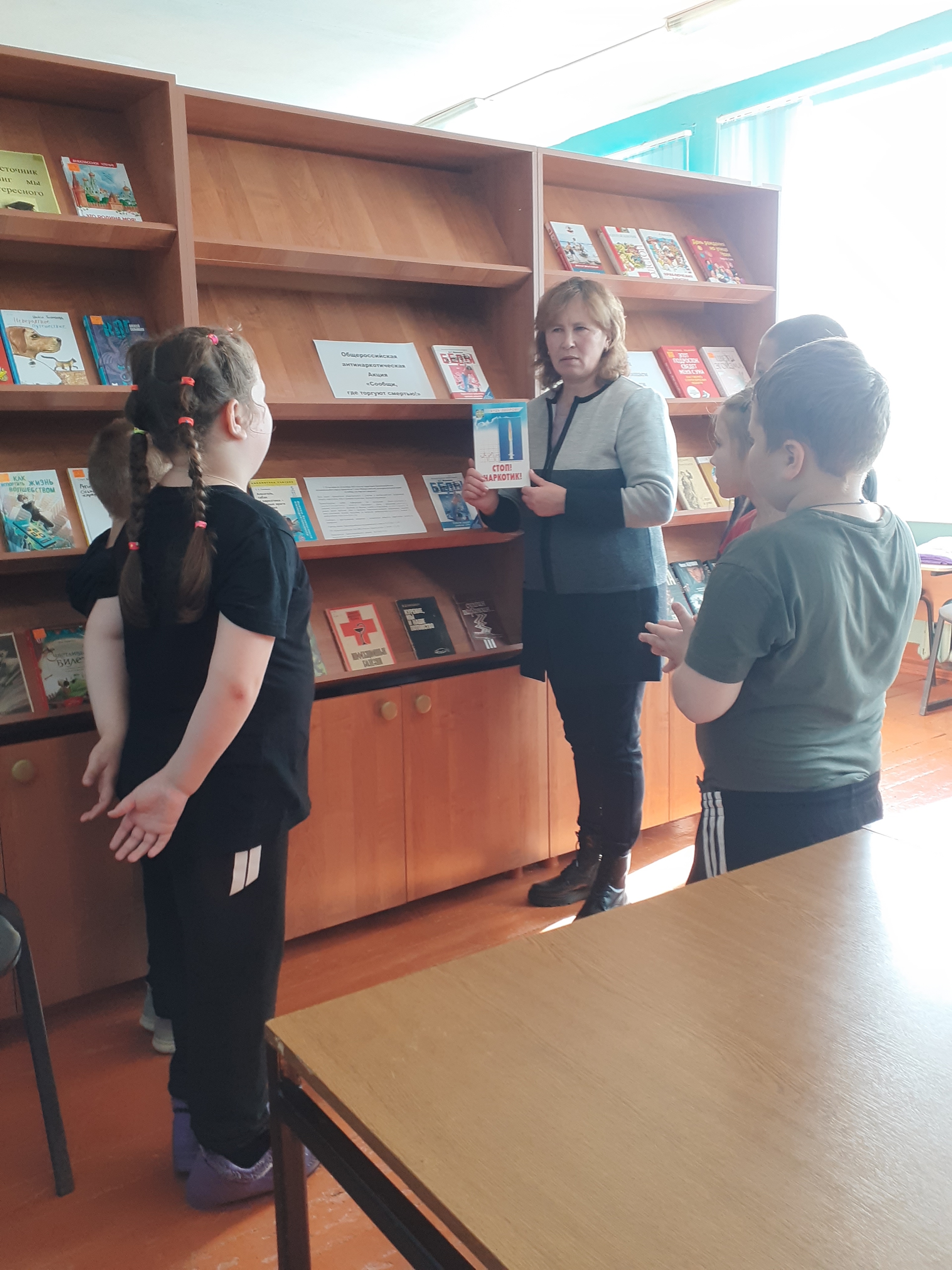 Была представлена книжная выставка ««Стоп! Наркотик!». В конце мероприятия библиотекарь обратилась к ребятам: «Наркоманию можно победить только всем миром. Сделайте свой вклад в борьбу с этим злом».