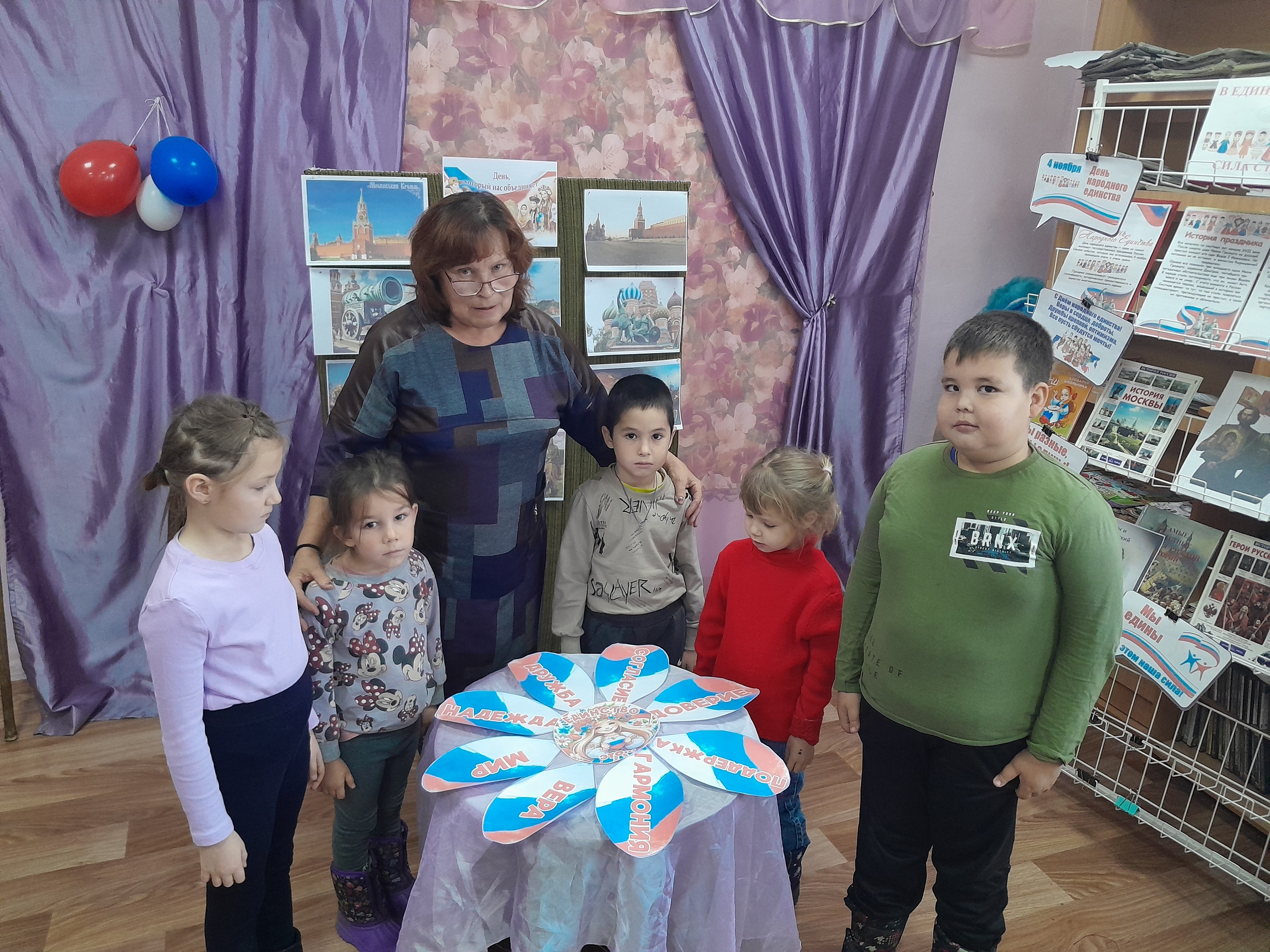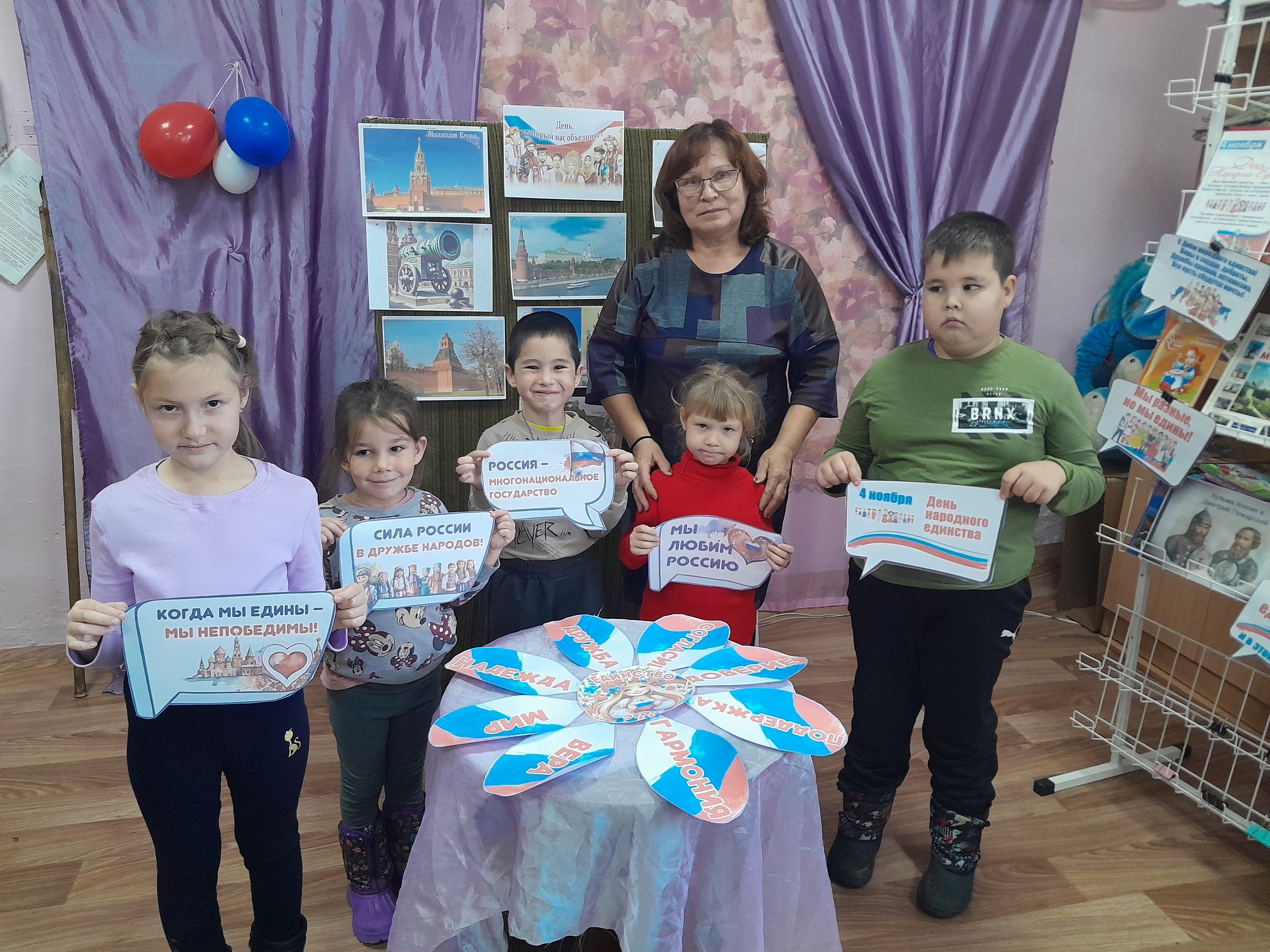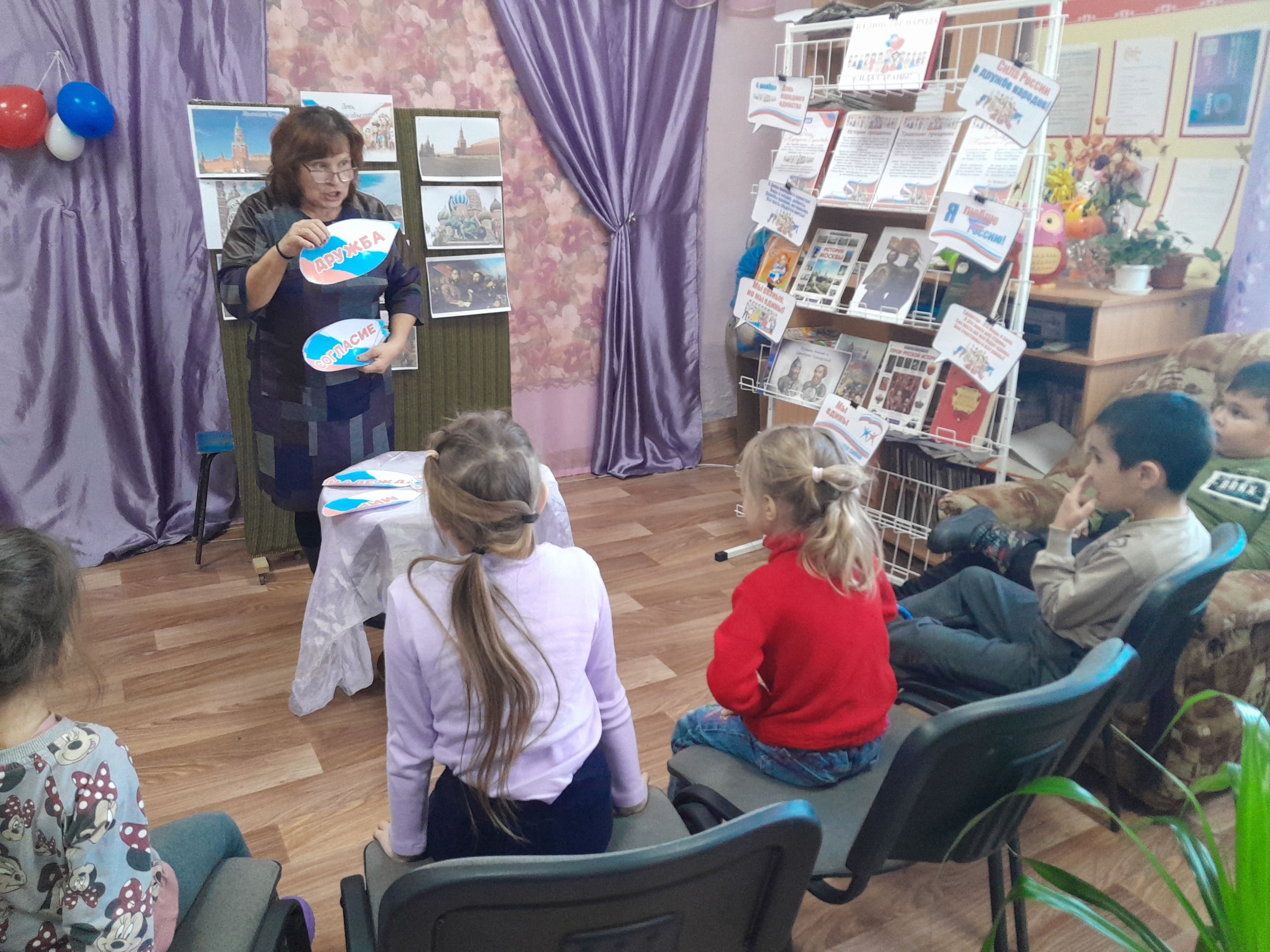 Библиотекарь объяснила детям историю праздника, рассказала о важности мира, согласия, дружбы и уважения к традициям разных народов России. Обсудили, что добро всегда побеждает зло, а дружба – это настоящая сила. Размышляли о том, что значит быть другом, помогать друг другу и решать конфликты мирным путем. Дети узнали, как красива и велика наша страна, сколько в ней удивительных мест и добрых людей.