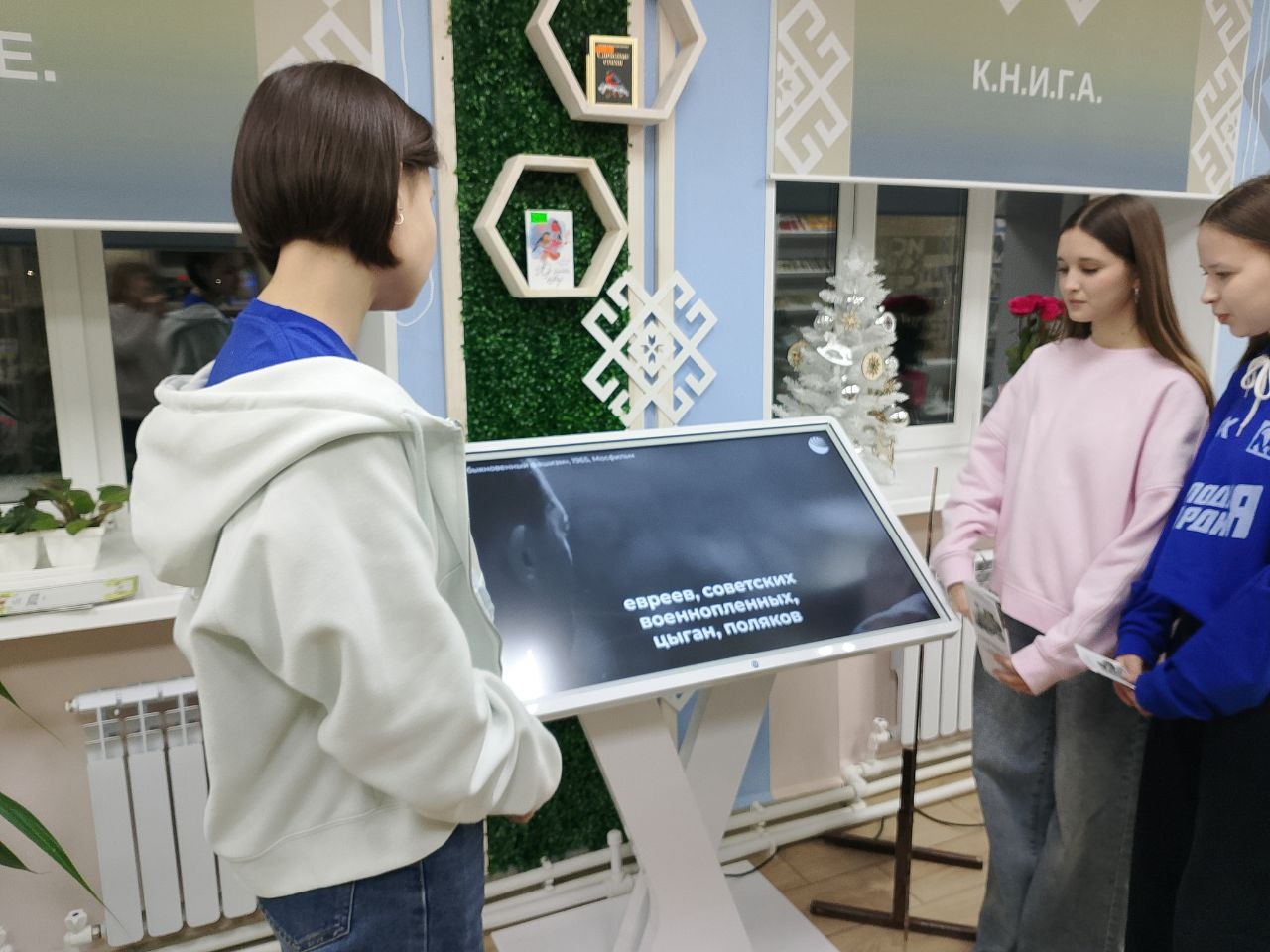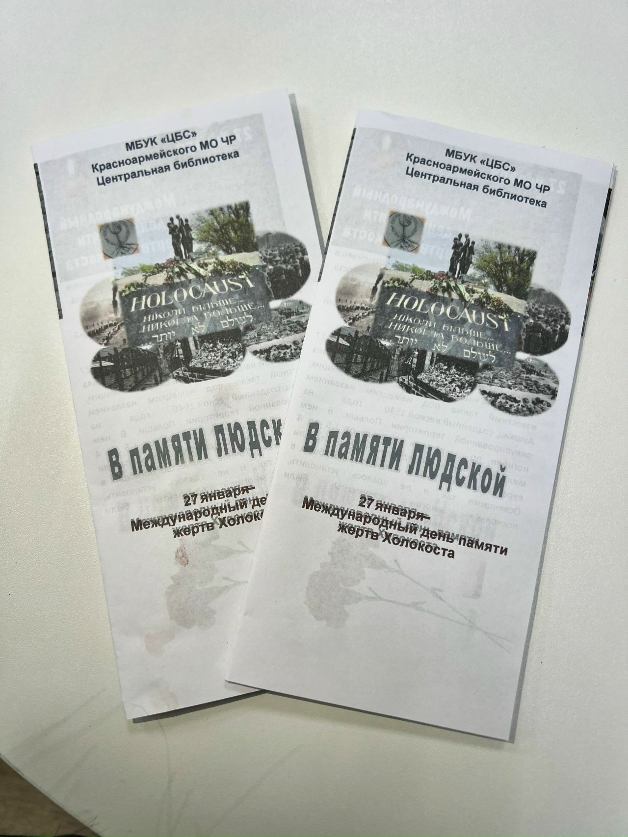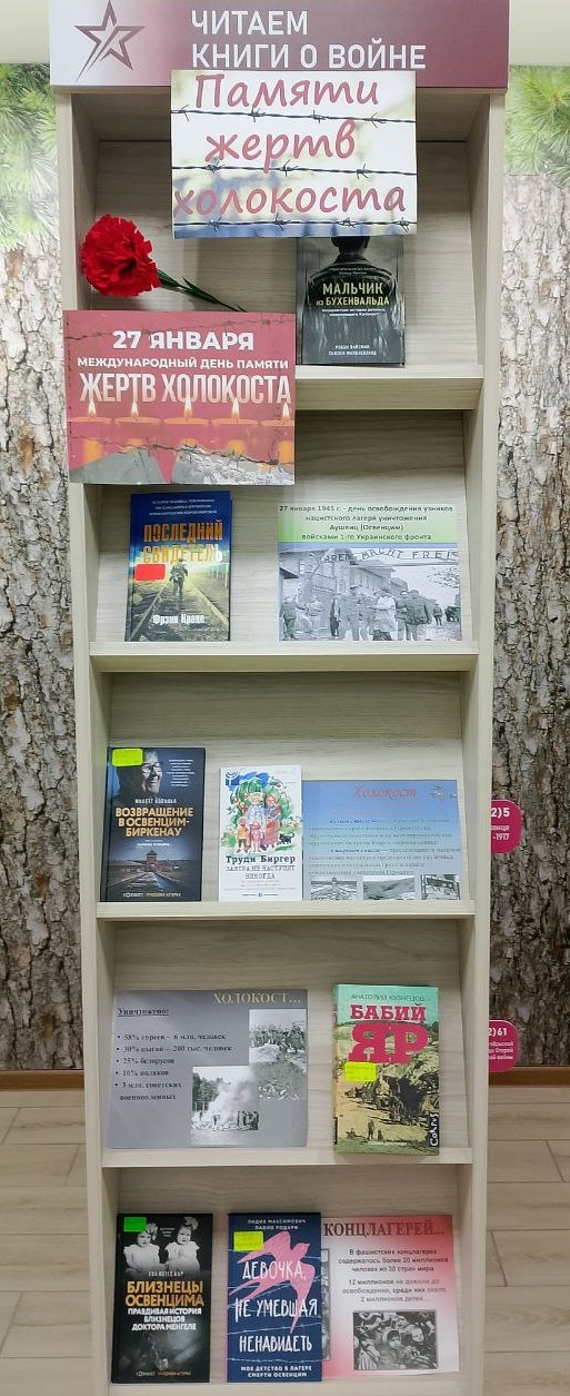 Для молодежи был проведен обзор книжной выставки «Памяти жертв холокоста». В заключение мероприятия все участники получили информационные буклеты о трагедии Холокоста «В памяти людской».