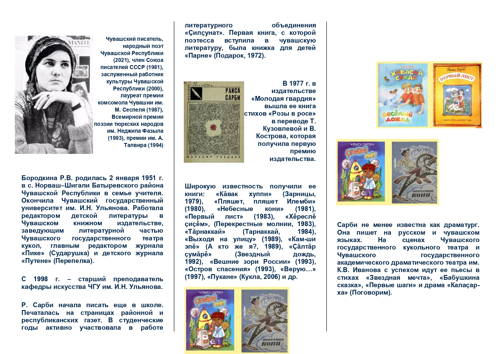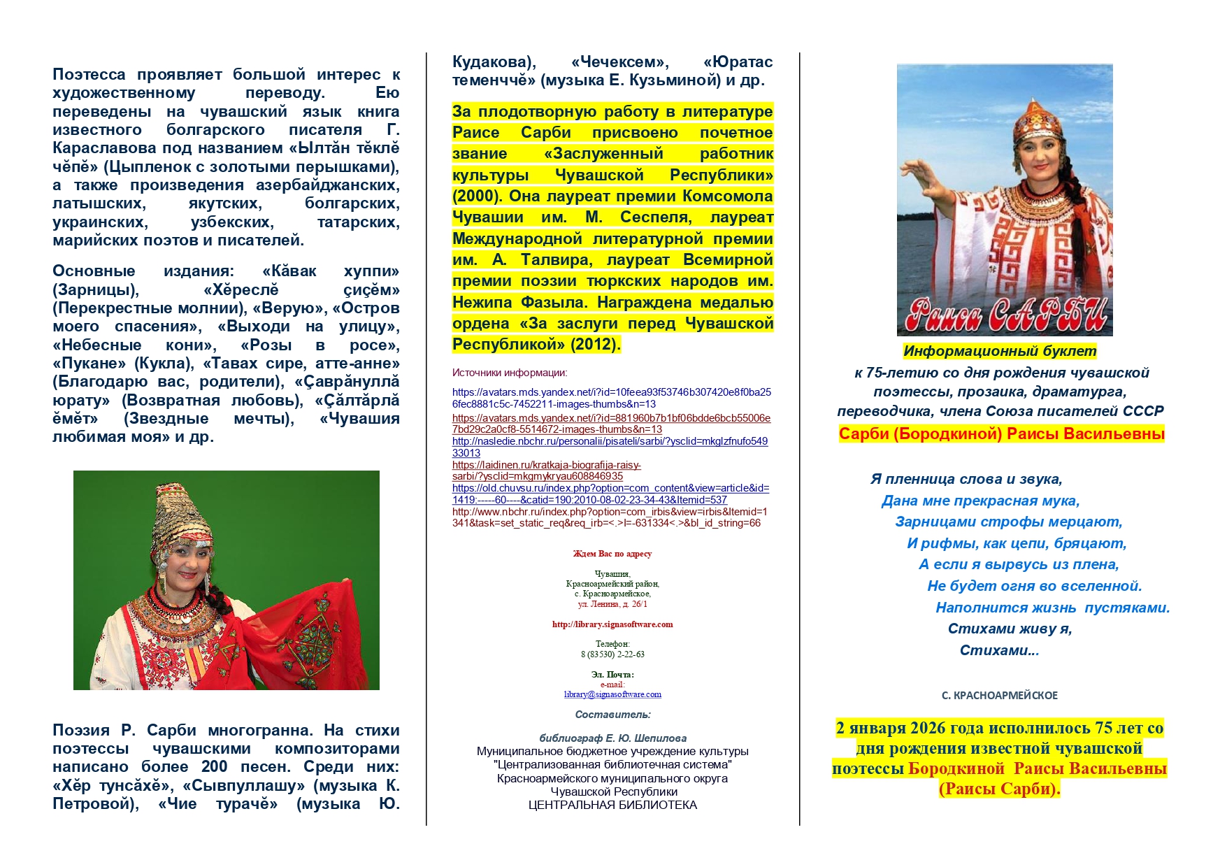 Информационный буклет к 75-летию со дня рождения чувашской поэтессы Раисы Сарби.