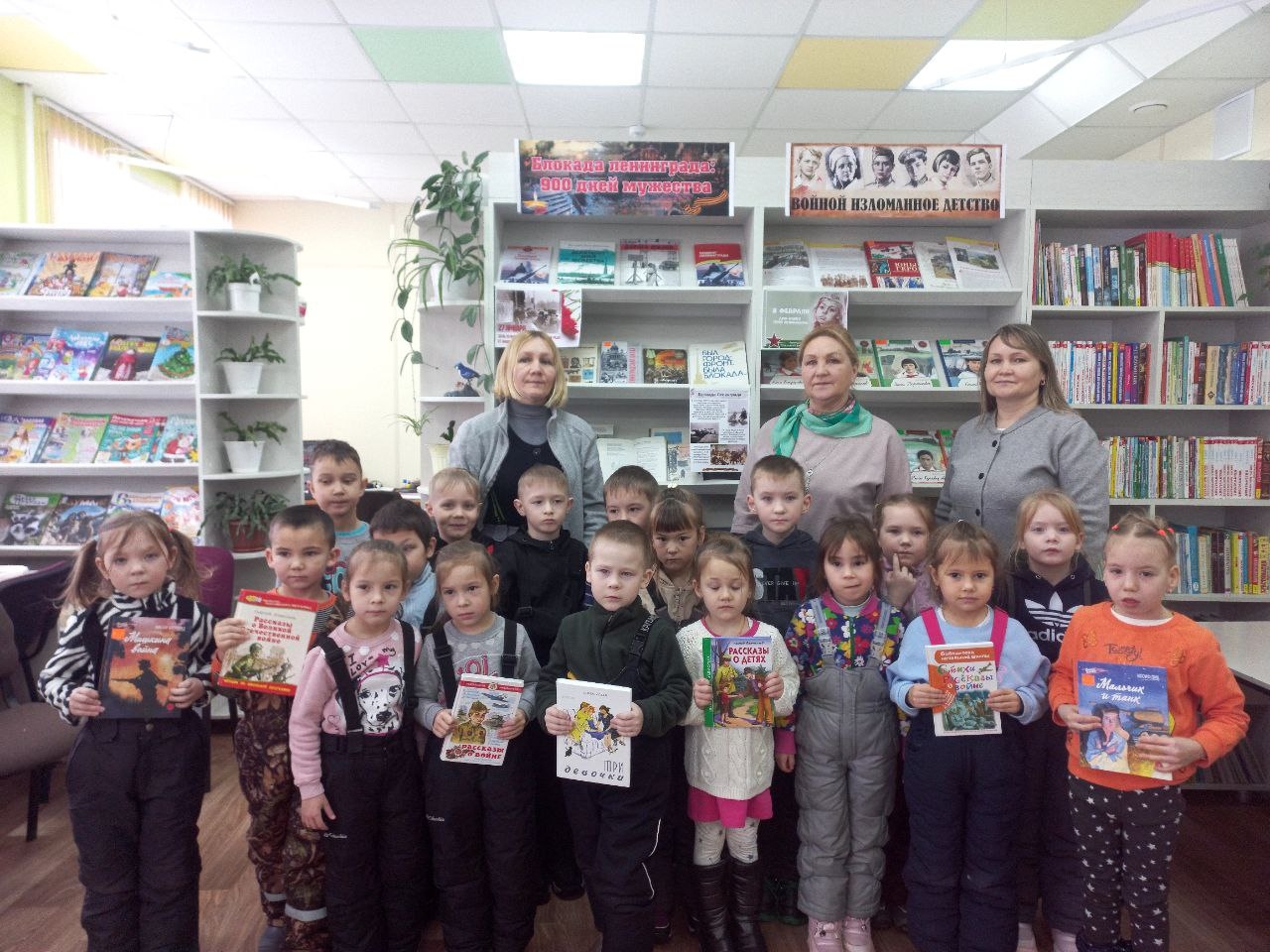 27 января, в памятный для страны День полного освобождения Ленинграда от фашистской блокады, в детской библиотеке состоялся историко-патриотический час «Война. Блокада. Ленинград». Участниками мероприятия стали воспитанники старшей подготовительной группы «Солнышко» МБДОУ «Звёздочка» (рук. Е.В. Кольцова, уч.18). Библиотекарь рассказала юным участникам мероприятия о блокаде Ленинграда, о Дороге жизни, о том, как жили и выживали люди в это страшное время, о хлебе и его роли в жизни ленинградцев. Дети с большим вниманием слушали рассказ библиотекаря, рассматривали фотографии блокадного Ленинграда, прониклись трагизмом тех событий.