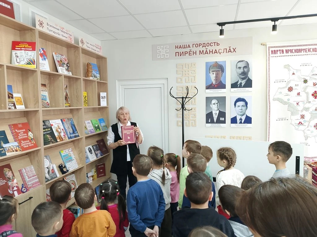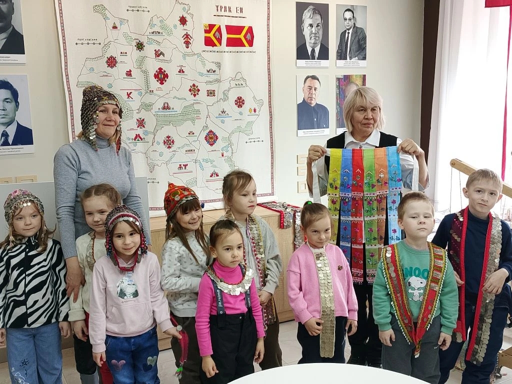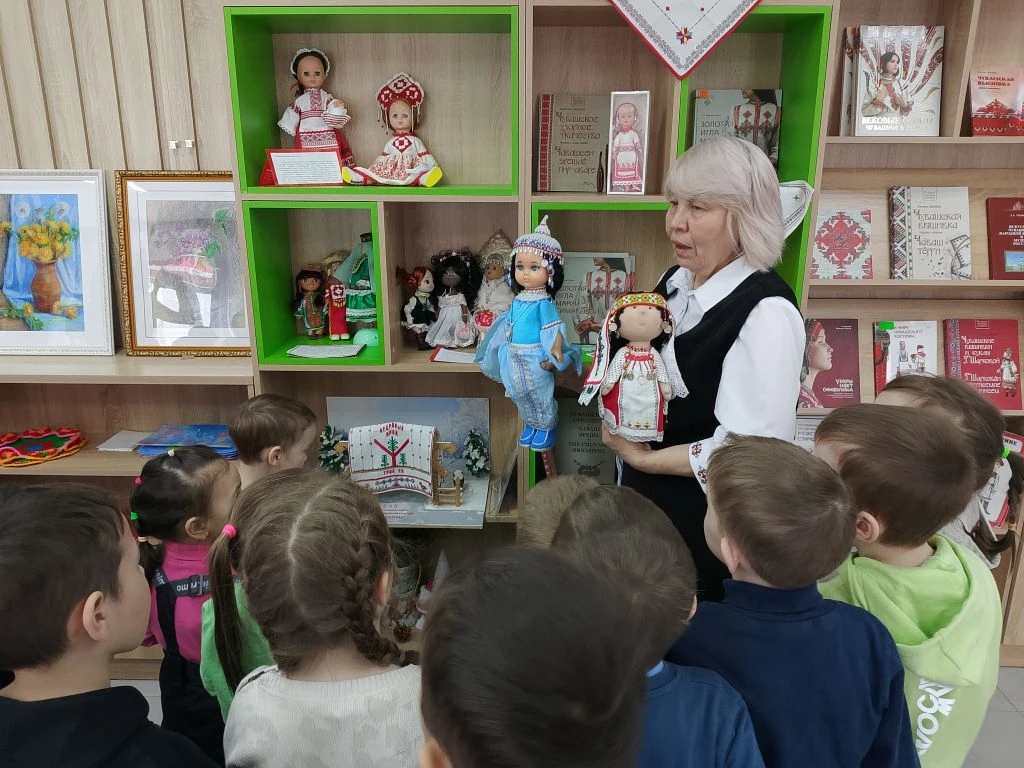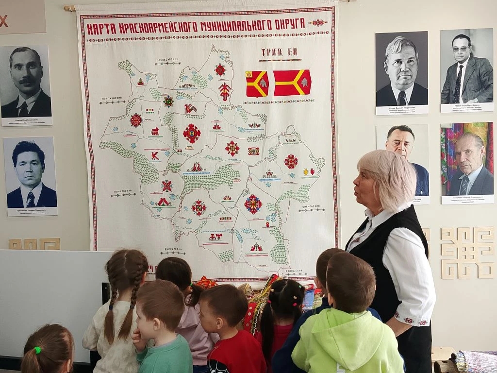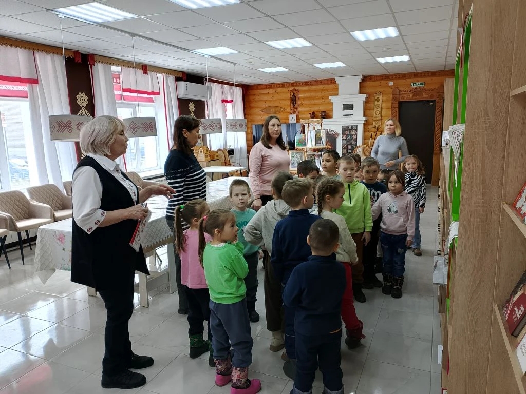 В рамках Недели чувашского языка и литературы воспитанники МБДОУ «Детский сад «Звездочка» с воспитателями Екатериной Витальевной Кольцовой, Светланой Вячеславовной Журавлевой, Ириной Валерьяновной Матвеевой посетили Творческую мастерскую «Трак ен» при Красноармейской центральной библиотеке. Сегодня дошколята совершили увлекательную экскурсию в мир рукодельного творчества, познакомились с чувашской вышивкой, национальным чувашским костюмом, вышитой картой Красноармейского округа, также с разными видами рукоделия, изделиями мастеров Трак ен.