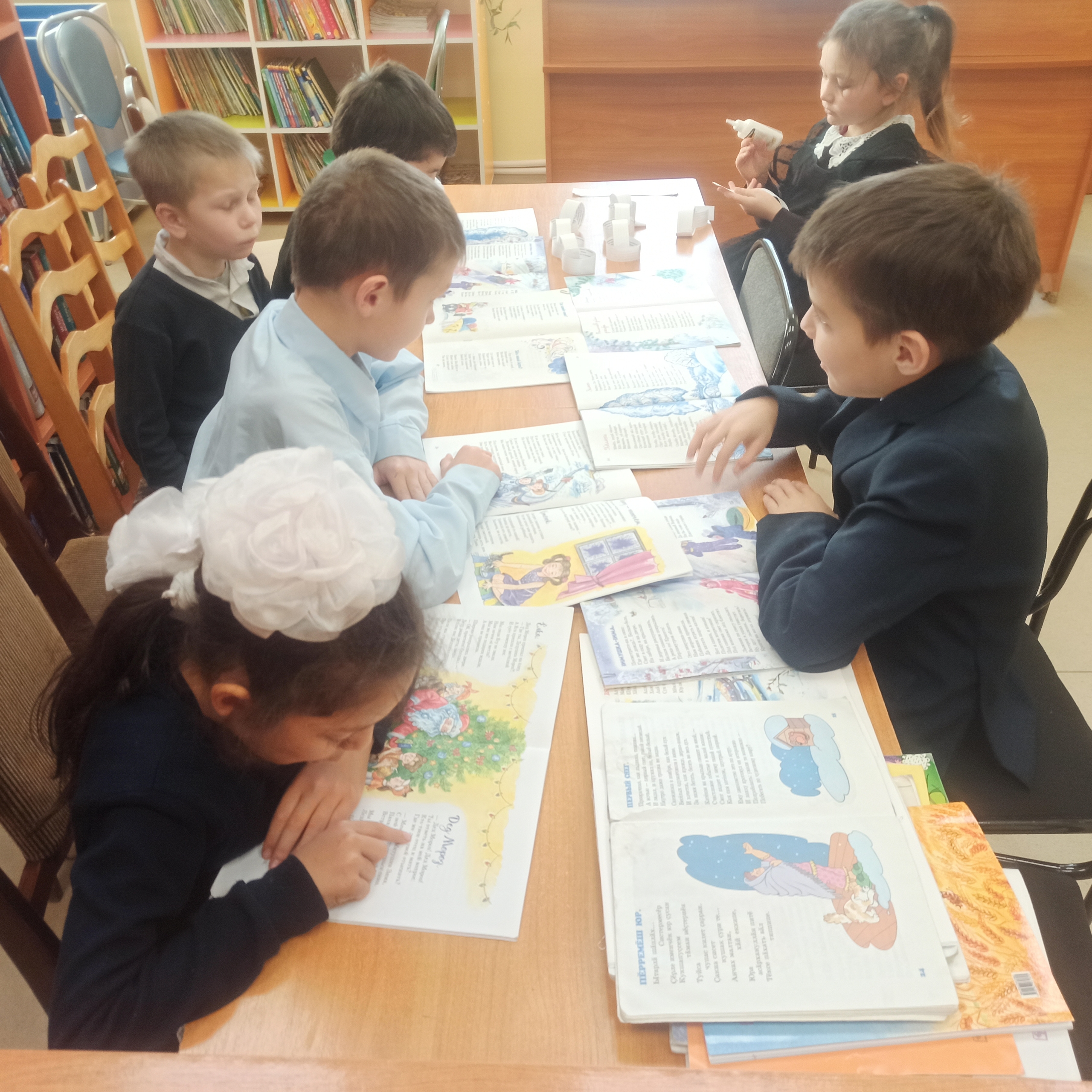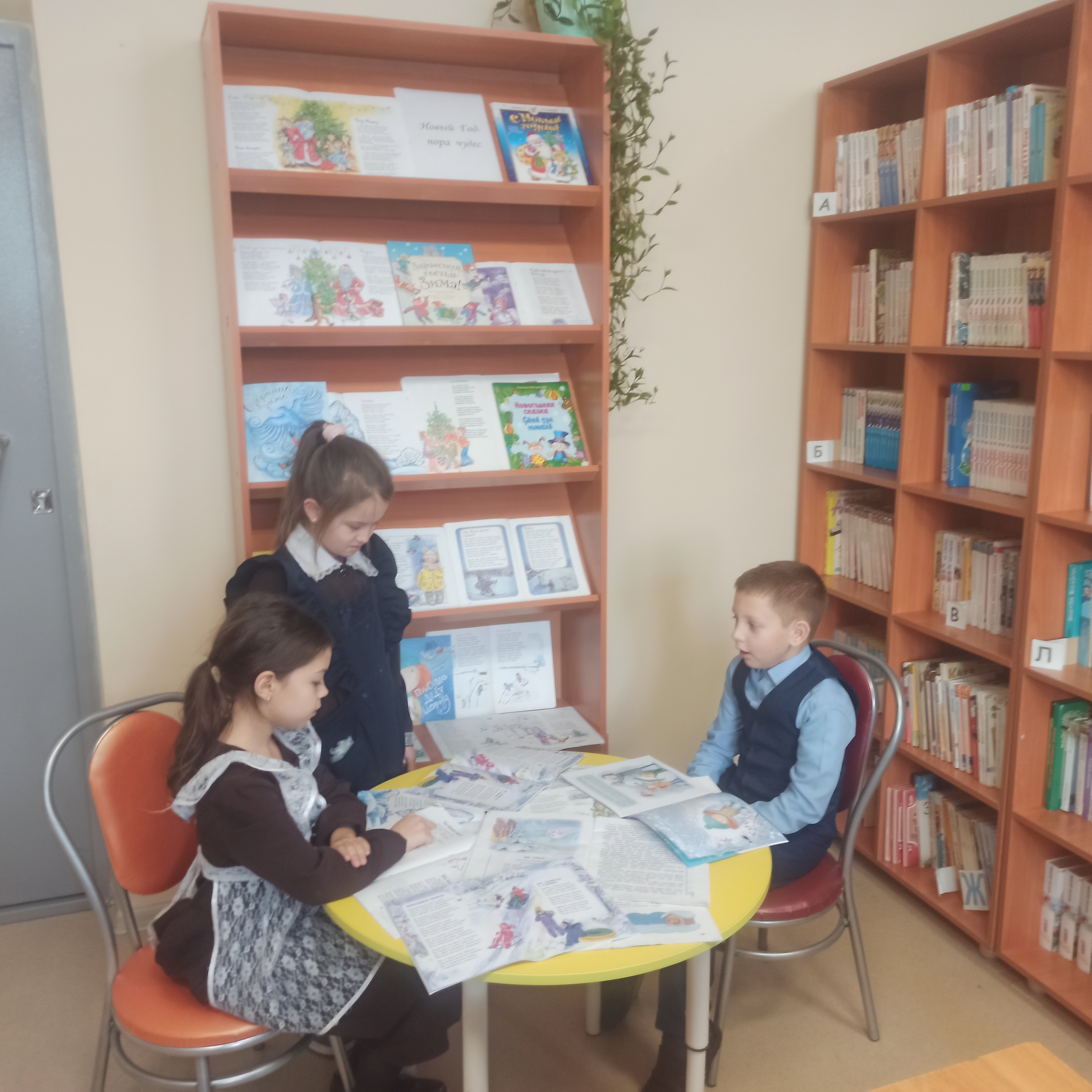 Вместе с библиотекарем учащиеся читают лучшие стихи и произведения, рассказывающие о зиме и новогодних праздниках, о Снегурочке и Дедушке Морозе.