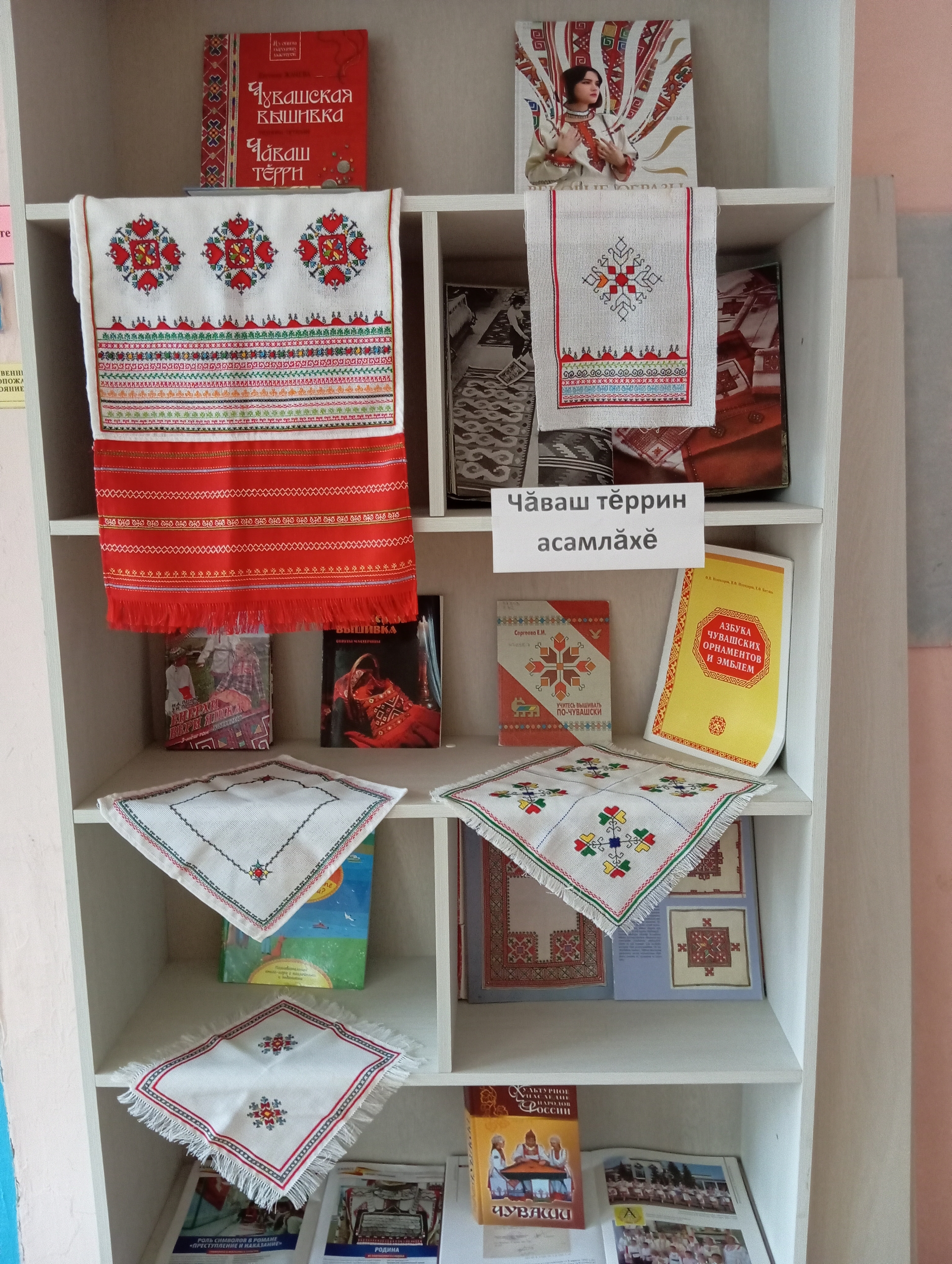В преддверии Дня чувашской вышивки в Янгасинской сельской библиотеке работает книжная выставка «Чăваш тĕррин асамлăхĕ».