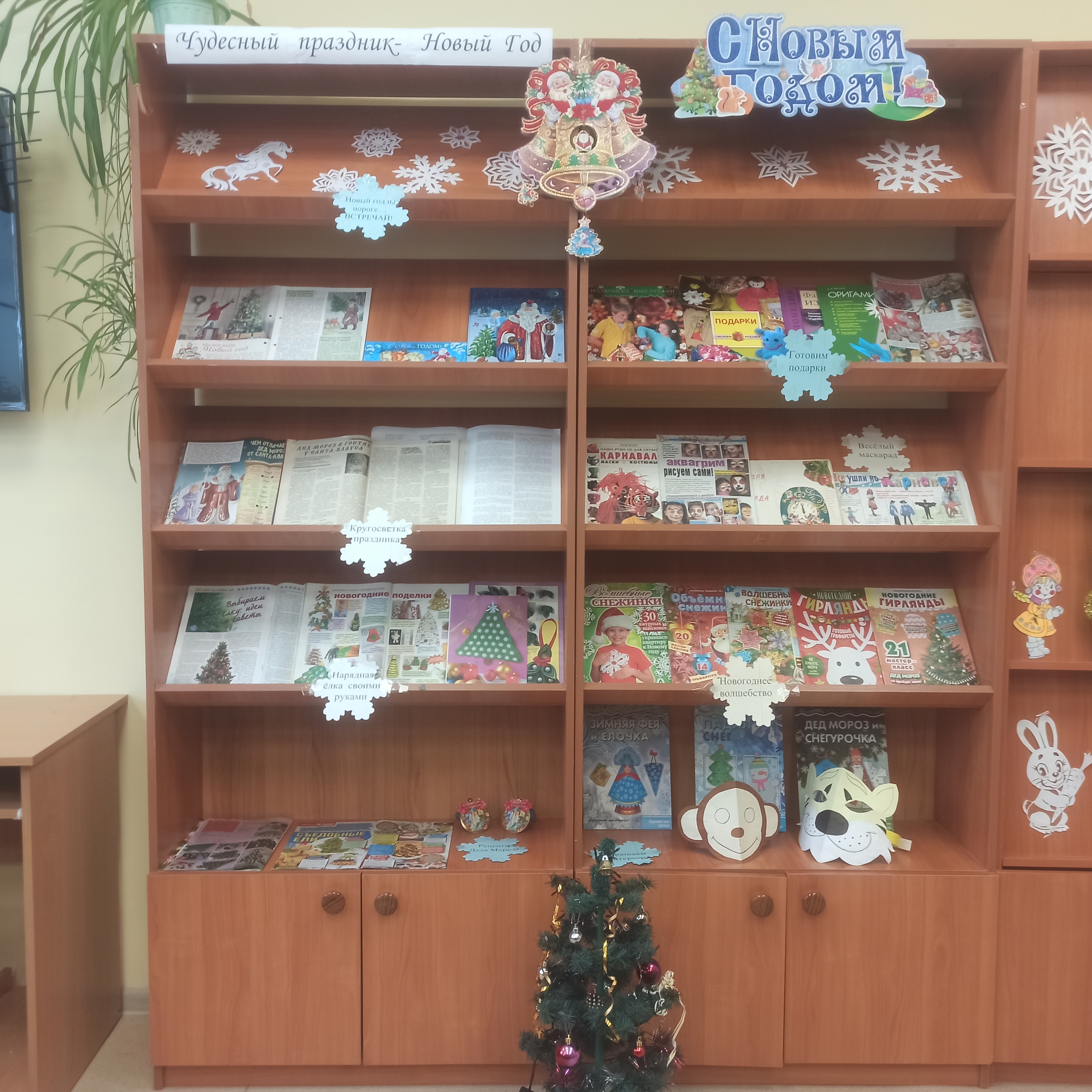 В преддверии Нового года для читателей библиотеки оформлена книжная выставка-совет «Чудесный праздник - Новый год»». На выставке представлены книги, которые помогут создать праздничное настроение и весело встретить Новый год. Яркая и красочная книжная экспозиция рассказывает об истории праздника, новогодних и рождественских традициях, народных приметах и поверьях.