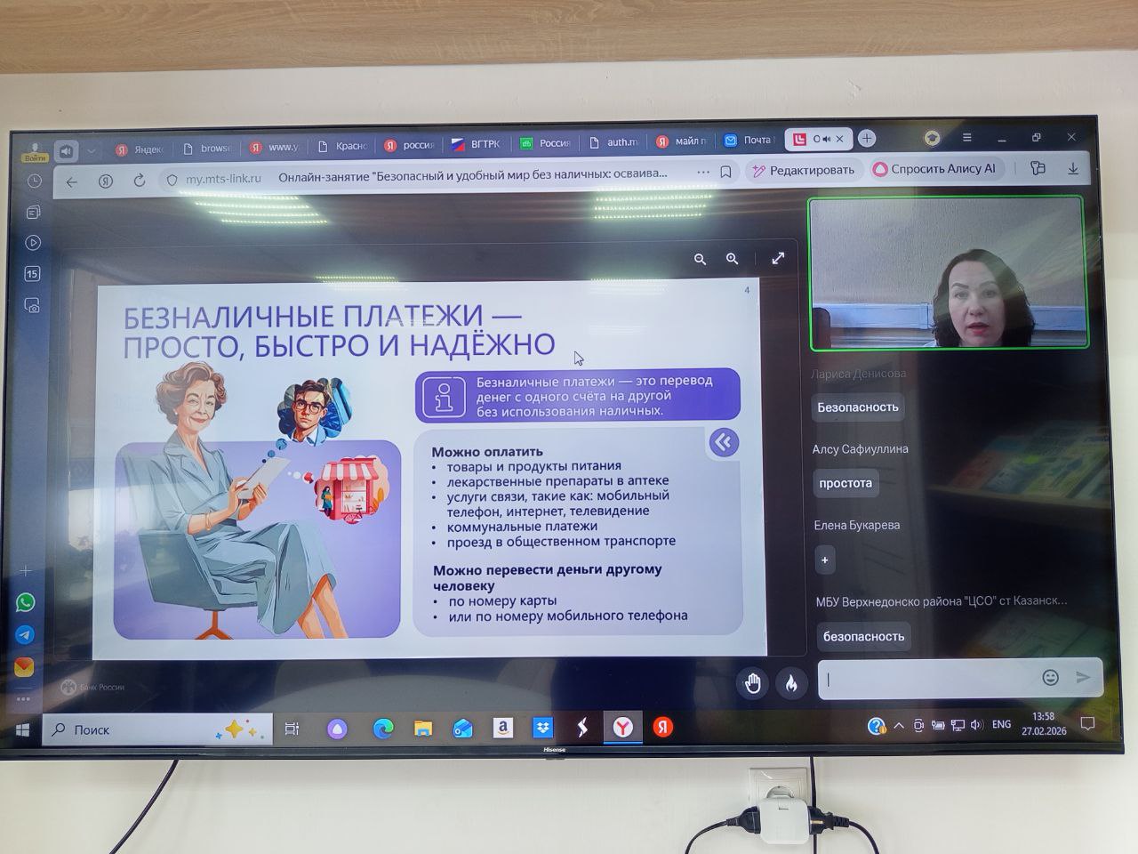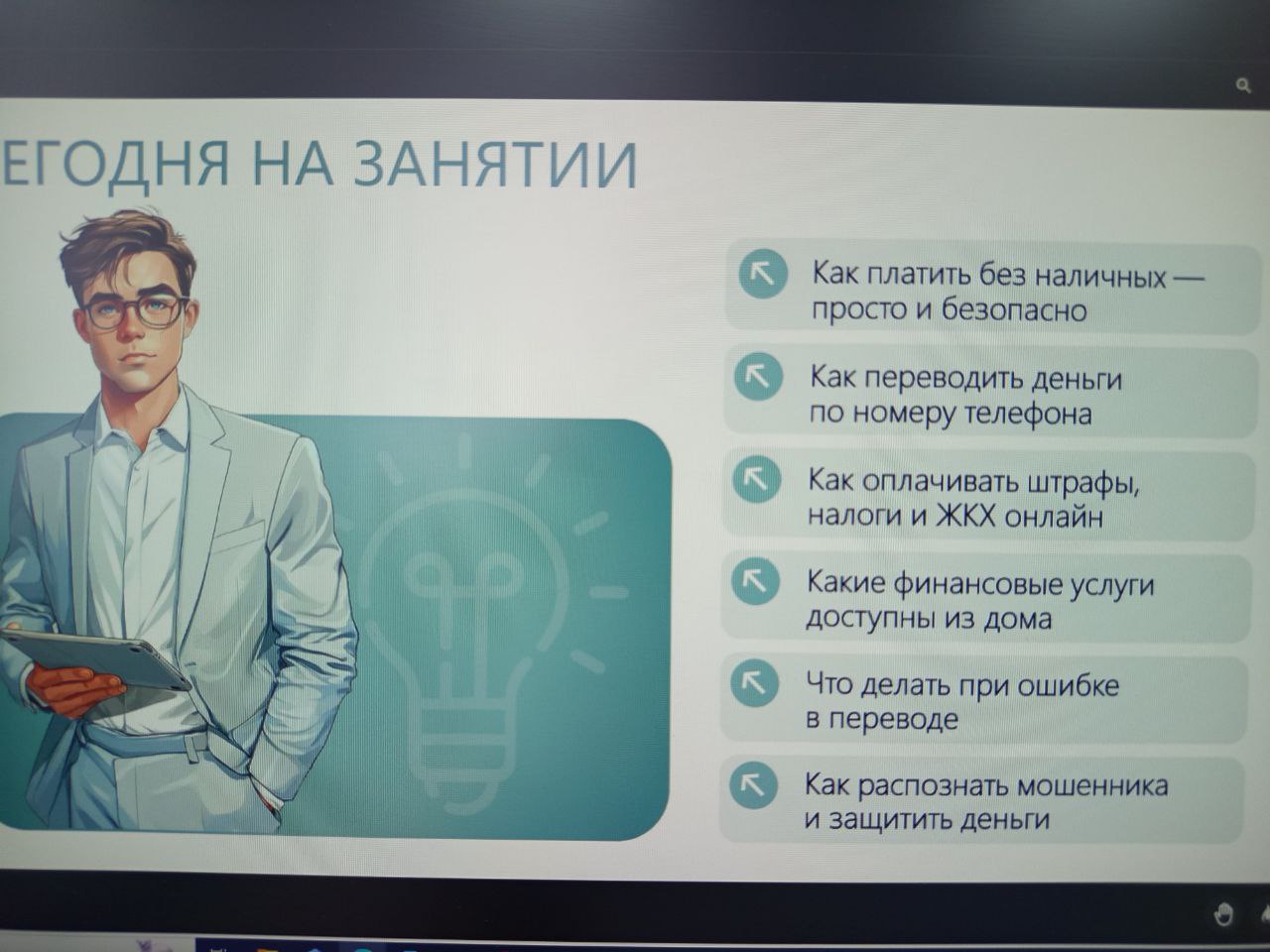 В информационно-ресурсном центре прошло онлайн-занятие по финансовой грамотности для старшего поколения на тему: "Безопасный и удобный мир без наличных: осваиваем технологии безналичных платежей в зрелом возрасте".