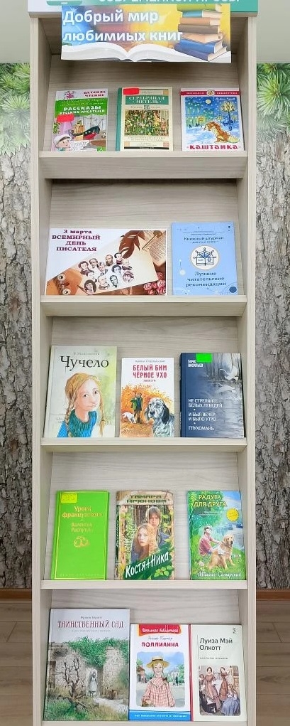 Экскурсия - обзор книжной выставки «Добрый мир любимых книг», посвященной ко Всемирному дню писателя.