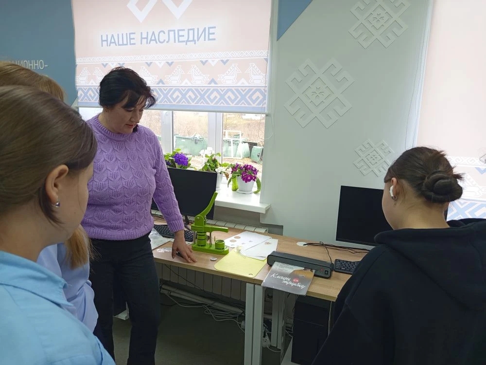 Учащиеся также посетили информационно-ресурсный центр "Наше наследие". Дети с большим удовольствием вместе с библиотекарями изготовили значки на станке, ламинировали фотографии. Работники библиотеки также объяснили как ставится фото на футболках, носках, кружках.