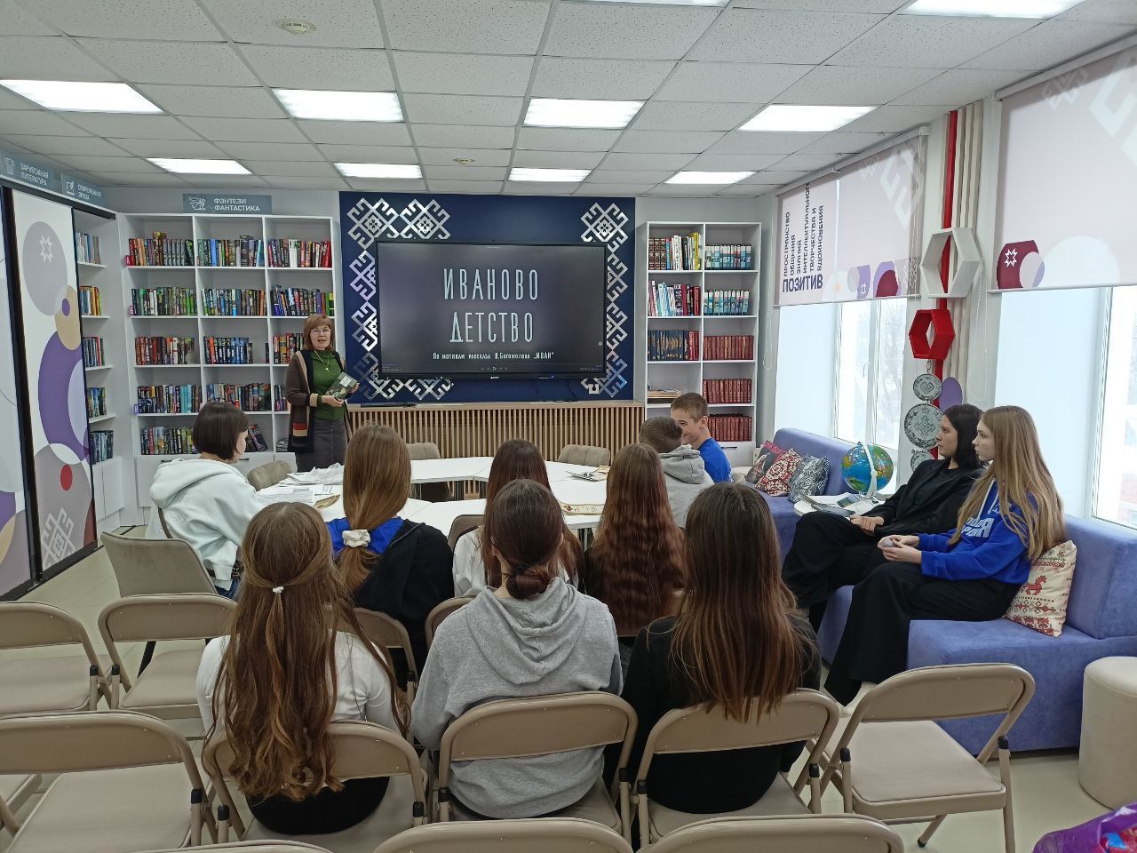 В рамках литературного часа ребята посмотрели отрывок документального фильма «Моменты истины Владимира Богомолова» телеканала «Звезда», который проливает свет на биографию и литературное творчество В. Богомолова, а также отрывки фильмов «Иваново детство» и «В августе сорок четвертого». Творчество Владимира Богомолова остается актуальным и вдохновляющим и продолжает жить в сердцах читателей.