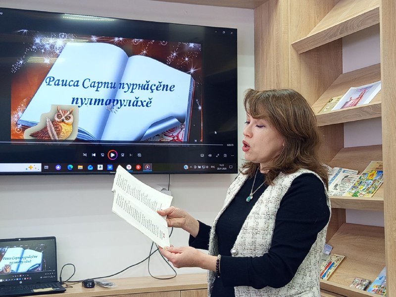 28 января состоялось первое в 2026 году мероприятие в рамках литературного клуба «ЛитераТерра» при информационно-ресурсном центре центральной библиотеки. Встреча участников литературного объединения была посвящена 75-летнему юбилею народного поэта Чувашской Республики Раисы Васильевны Сарби (Бородкиной). Встреча с участниками клуба прошла в формате музыкально-поэтического часа. Вниманию участников клуба были представлены книжная выставка «Раиса Сарби — звезда чувашской поэзии», презентация «Раиса Сарпи пурнӑҫӗпе пултарулӑхӗ», музыкальные композиции для детей и взрослых, написанные чувашскими композиторами на стихотворения поэтессы; информационный буклет, посвященный жизни и творчеству народного поэта Чувашии, а также рекомендательный список литературы, содержащий информацию о книгах и публикациях в периодической печати из фондов центральной библиотеки, а также из фондов Национальной библиотеки Чувашской Республики, посвященных жизни и творчеству Раисы Васильевны Сарби.