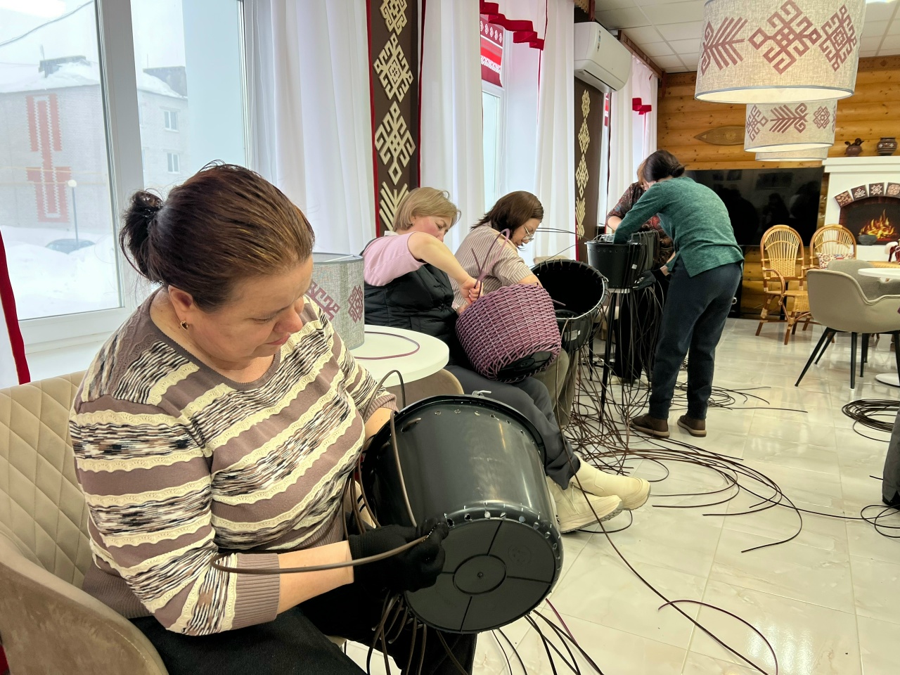 С первых минут в зале чувствовалось вдохновение: аккуратно разложенные материалы, живой интерес в глазах и огромное желание научиться чему-то новому. Шаг за шагом, переплетая ленты ротанга, участницы создавали свои первые корзины — стильные, прочные и по-настоящему душевные.