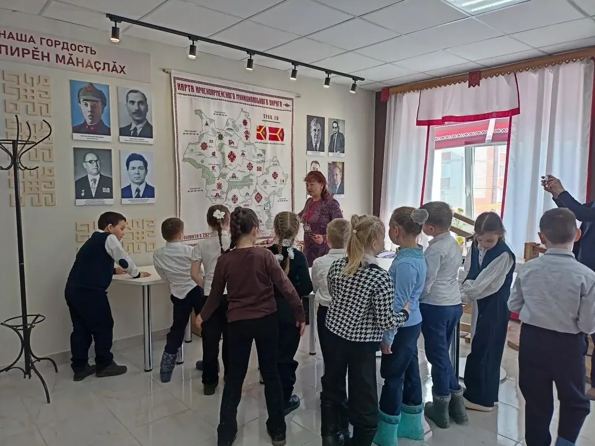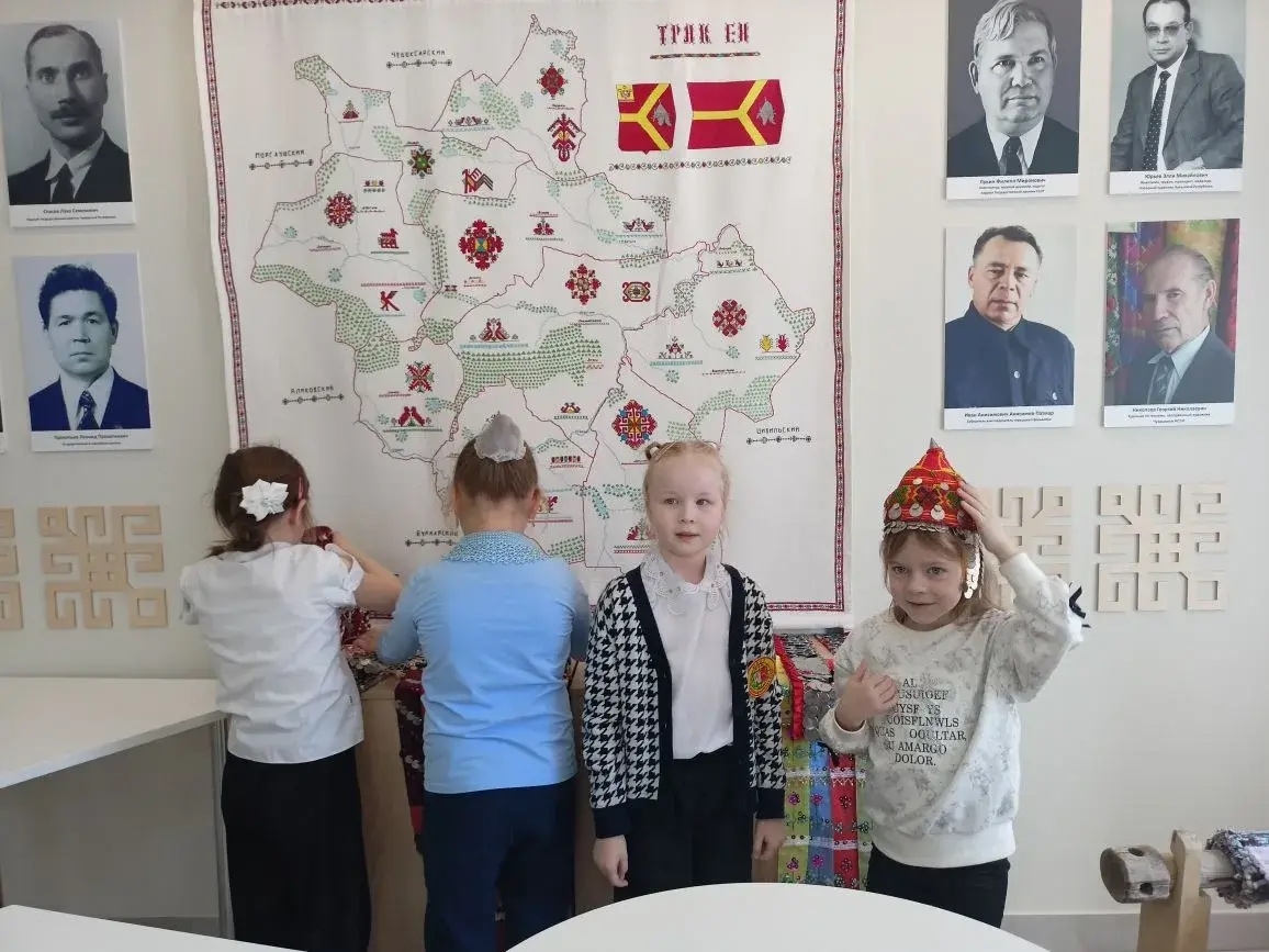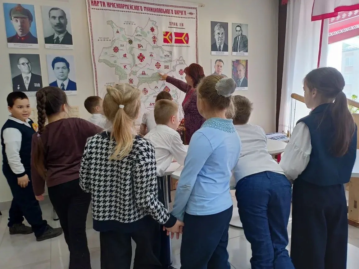 Мы вместе отправились в путешествие по вышитой карте Красноармейского округа, где первыми нашли наше родное село Красноармейское и узнали, какие деревни расположены по соседству.