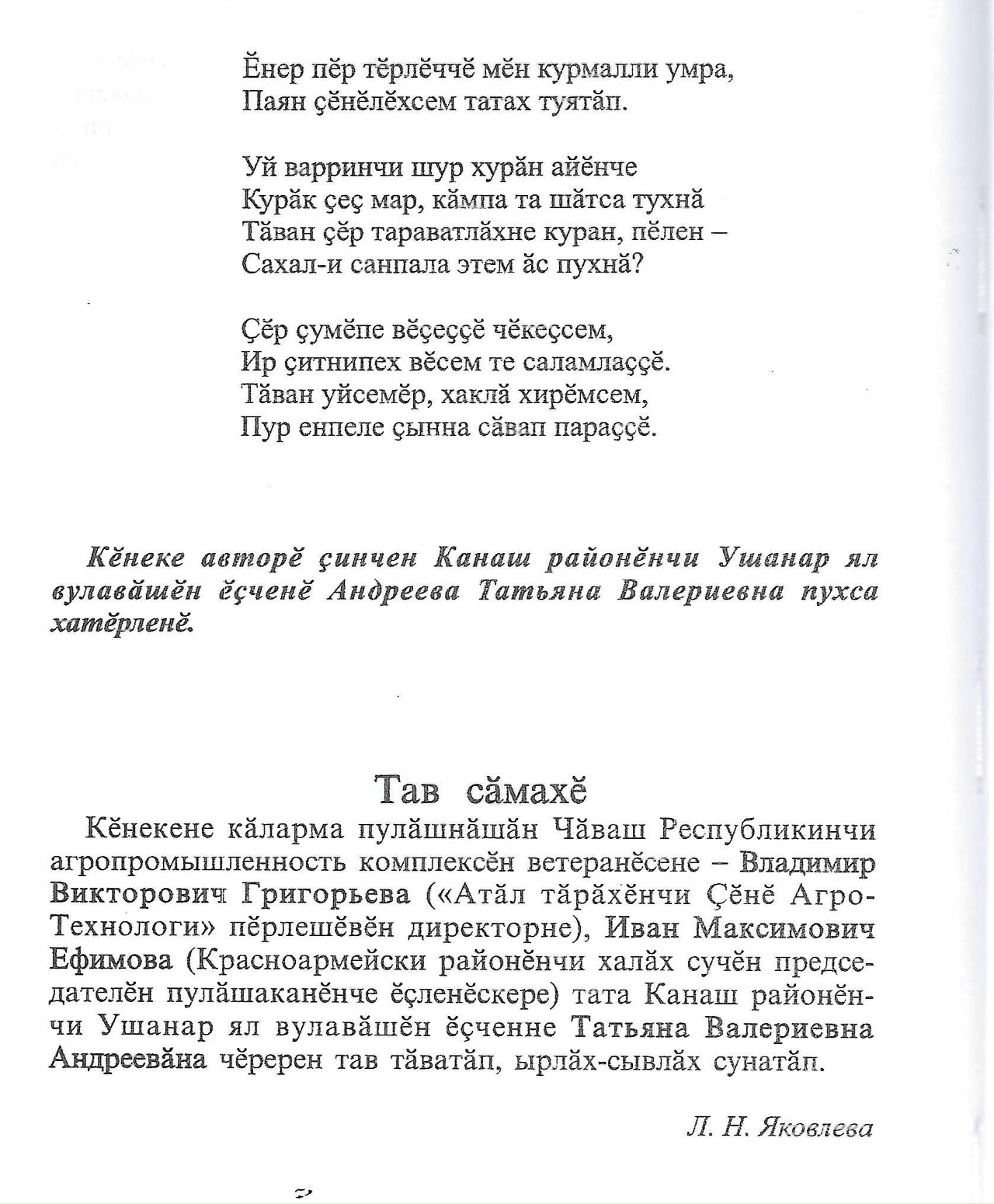 Презентация сборника стихотворений «Сӑвӑсемпе уҫатӑп кӑмӑла» Лидии Яковлевой