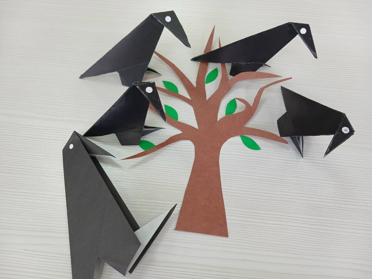 Завершением творческого часа стало создание своими руками картины «Грачи прилетели» в технике оригами. Ребята объединили усилия и создали коллективную аппликацию, которая получилась яркой и выразительной — на ней изображены грачи, вернувшиеся с зимовки, и первые признаки пробуждающейся весны.