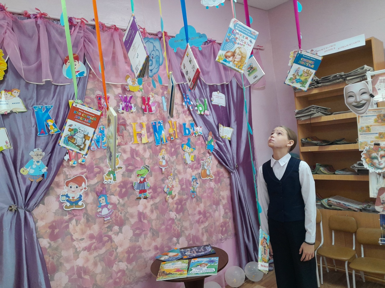 Программа мероприятия была яркой и разнообразной: ребята проявили свои знания в литературных конкурсах «Отгадай героя сказки», «Волшебные слова», «Салат из сказок», «Человек – не человек» и в словесной игре «Это я, это я, это все мои друзья!». Подсказки для выполнения заданий предоставляли книги на выставке «Книжный дождь». Учащиеся с усердием справились с конкурсе, продемонстрировав не только хорошее знание литературных произведений, но и умение находить оригинальные решения.